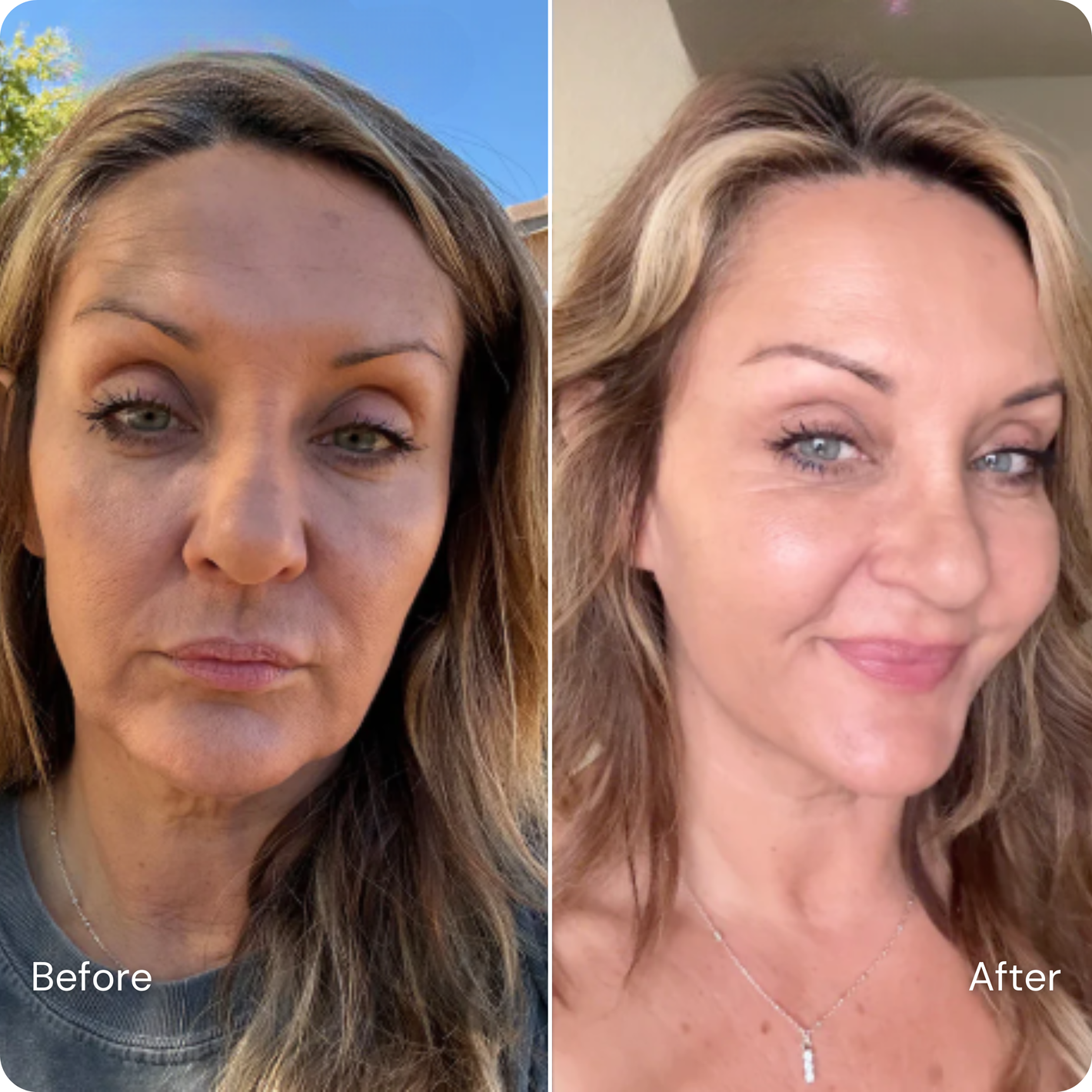 Skin looks smoother and feels firmer. Wrinkles begin to fade, and facial contours appear subtly lifted.